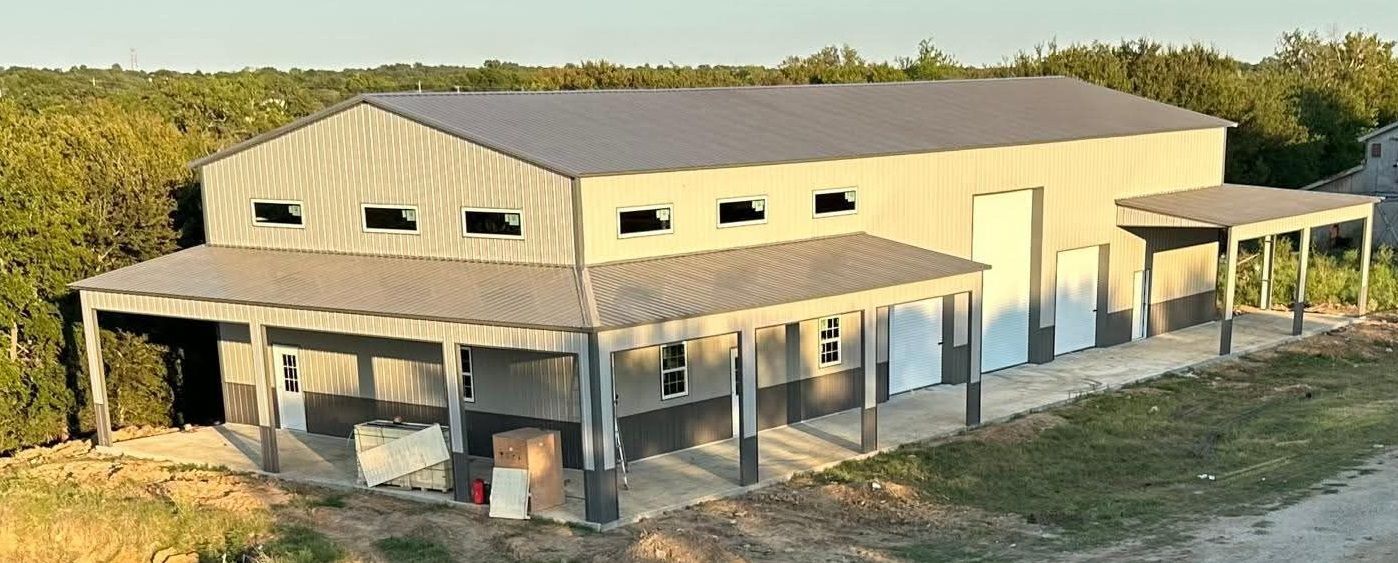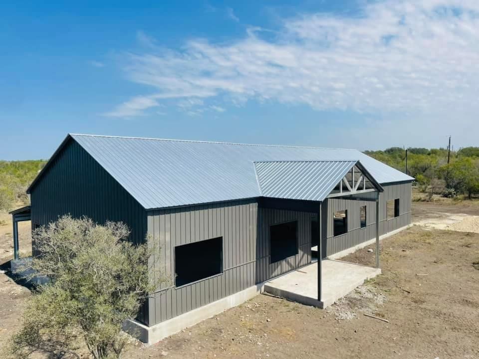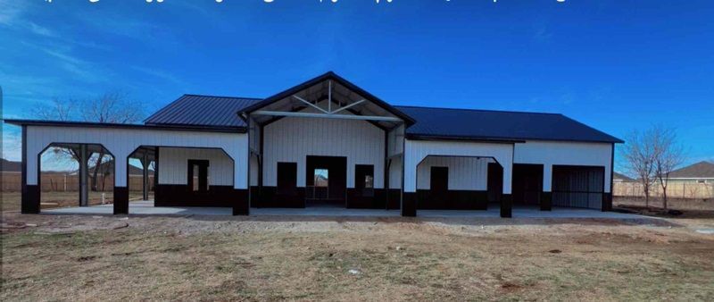If you're looking for a large and versatile Barndo style, the Texas Style Barn is the perfect choice. This unique shell style offers three sections, with the center being taller than the side lean-to's. The center can be ordered with a roof pitch from 2/12 to 6/12 and can be as wide as 60ft, 20ft tall, and up to 200ft long. The sides can be as wide as 20ft and up to 200ft long, and are limited to the height of the center section. This style is best for those who need three dividers for their space. Contact us to learn more!